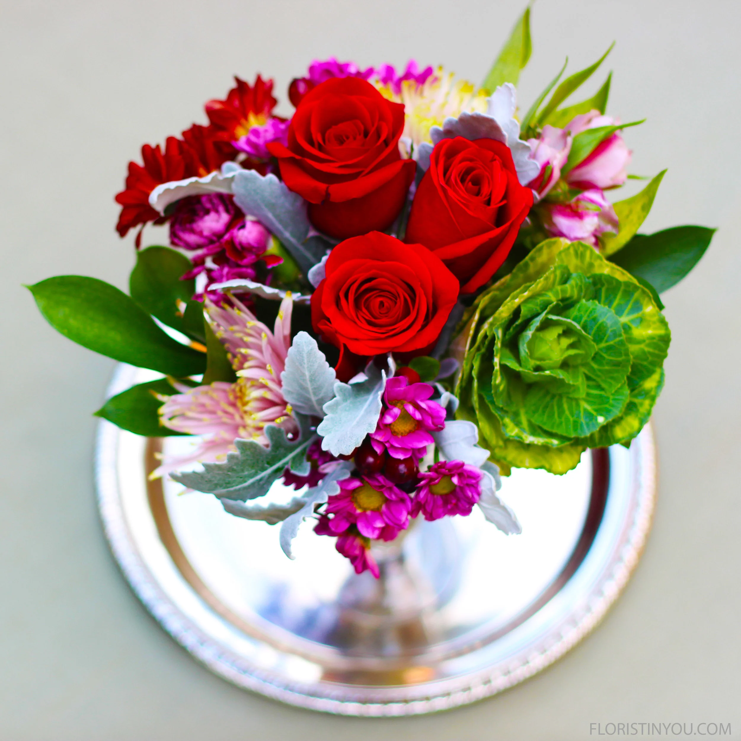 This one is fast and easy, so if you have your petite bouquet, your vase and tray, you are ready. Hold onto your pants, this is going to be fast.